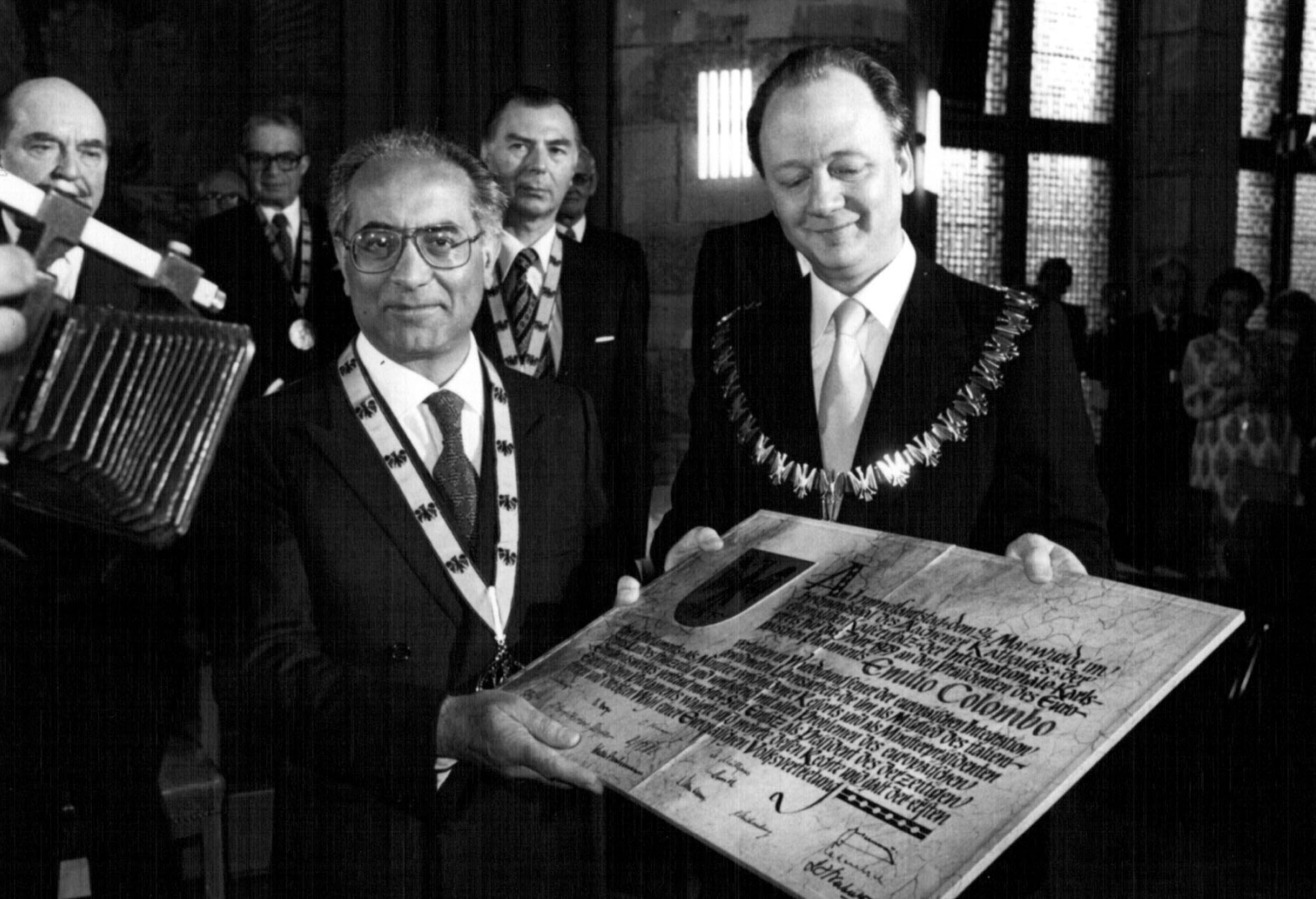Am Himmelfahrtstag, dem 24. Mai, wurde im Krönungssaal des Aachener Rathauses, der ehemaligen Kaiserpfalz, der Internationale Karlspreis für das Jahr 1979 an den Präsidenten des Europäischen Parlaments Emilio Colombo verliehen in Würdigung seiner der europäischen Integration gewidmeten Lebensarbeit, die ihn als Mitglied des italienischen Parlaments, als Minister verschiedener Ressorts und als Ministerpräsidenten seines Landes frühzeitig und umfassend mit allen Problemen des europäischen Einigungswerkes vertraut machte. Sein Einsatz als Präsident des derzeitigen Europäischen Parlaments wahrte und mehrte dessen Rechte und galt der ersten freien und direkten Wahl einer Europäischen Volksvertretung.