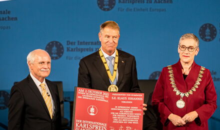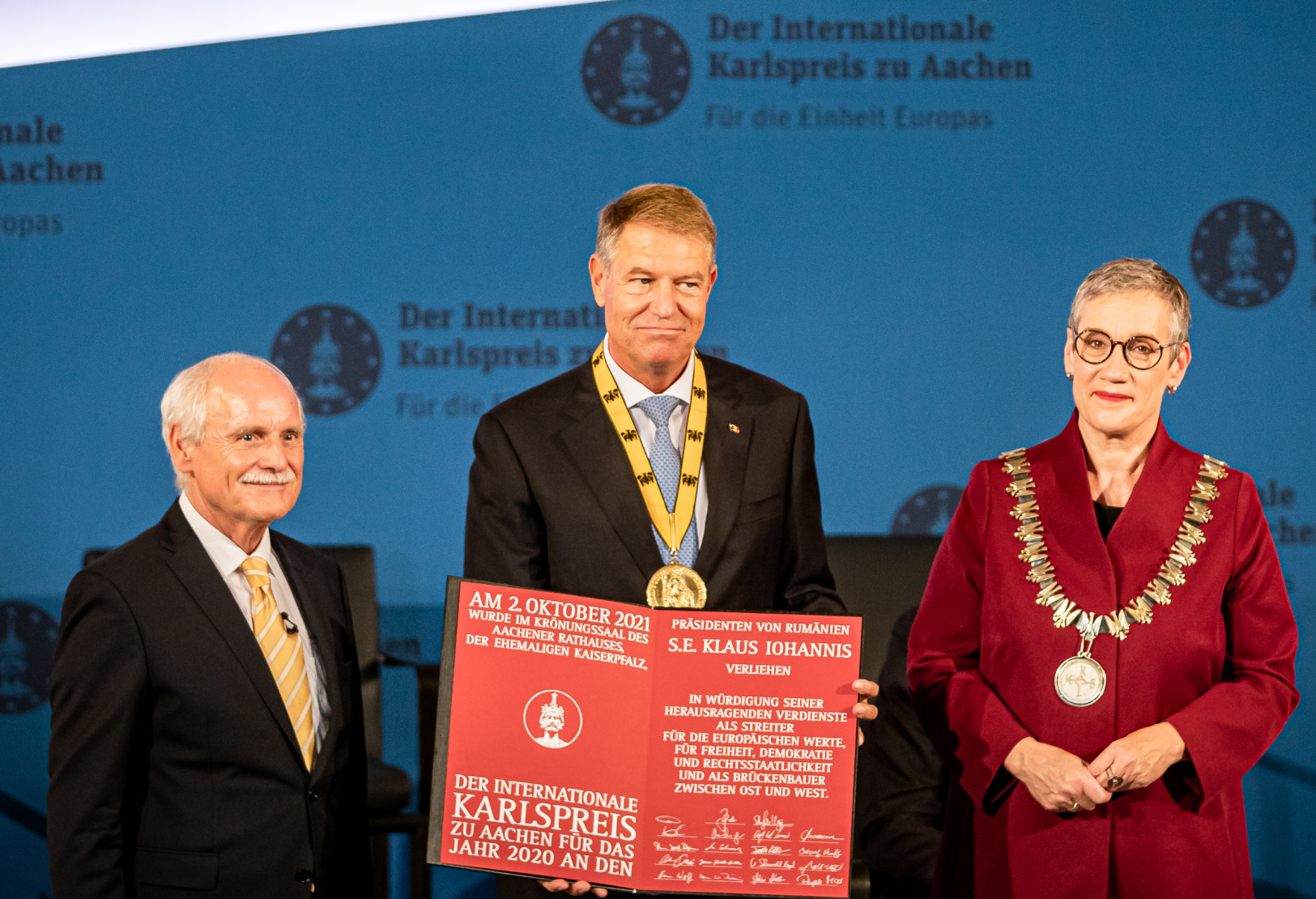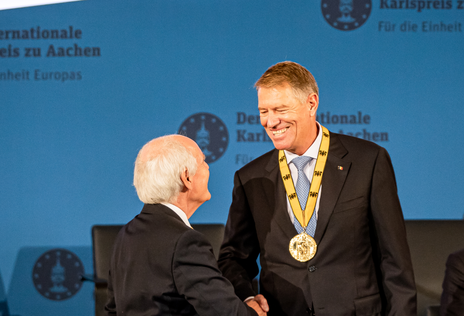Mit dem Präsidenten von Rumänien, Klaus Johannis, ehrt das Direktorium der Gesellschaft für die Verleihung des Internationalen Karlspreises zu Aachen im Jahr 2020 einen herausragenden Streiter für die europäischen Werte, für Freiheit und Demokratie, den Schutz von Minderheiten und kulturelle Vielfalt, der sich bedeutende Verdienste um die Rechtsstaatlichkeit und die Unabhängigkeit der Justiz erworben hat – eine fundamentale Voraussetzung für eine weitere Vertiefung der Integration. Die Preisverleihung ist eine Ermutigung für Klaus Johannis, seinen europäischen Weg entschlossen weiterzugehen; eine Ermutigung für uns alle, die europäische Idee voranzutreiben und zu leben.