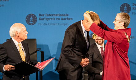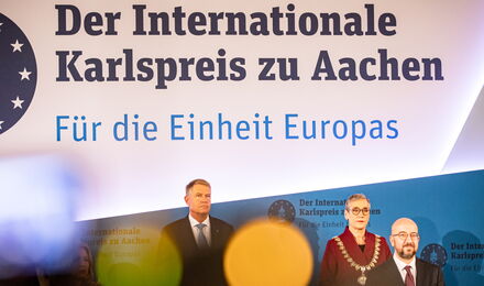 Die Europäische Union ist heute in vielen wesentlichen Fragen zerstritten und gespalten. Angesichts der großen globalen Herausforderungen braucht es aber Einigkeit, gegenseitige Anerkennung und Versöhnung. Den europäischen Wertekanon, die Stärkung der europäischen Rechtsgemeinschaft und die gemeinsame Idee von einer europäischen Zukunft verkörpert im Osten der Karlspreisträger 2020, der Präsident von Rumänien, Klaus Johannis.