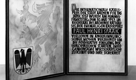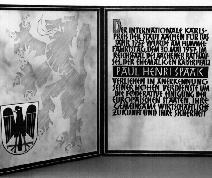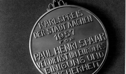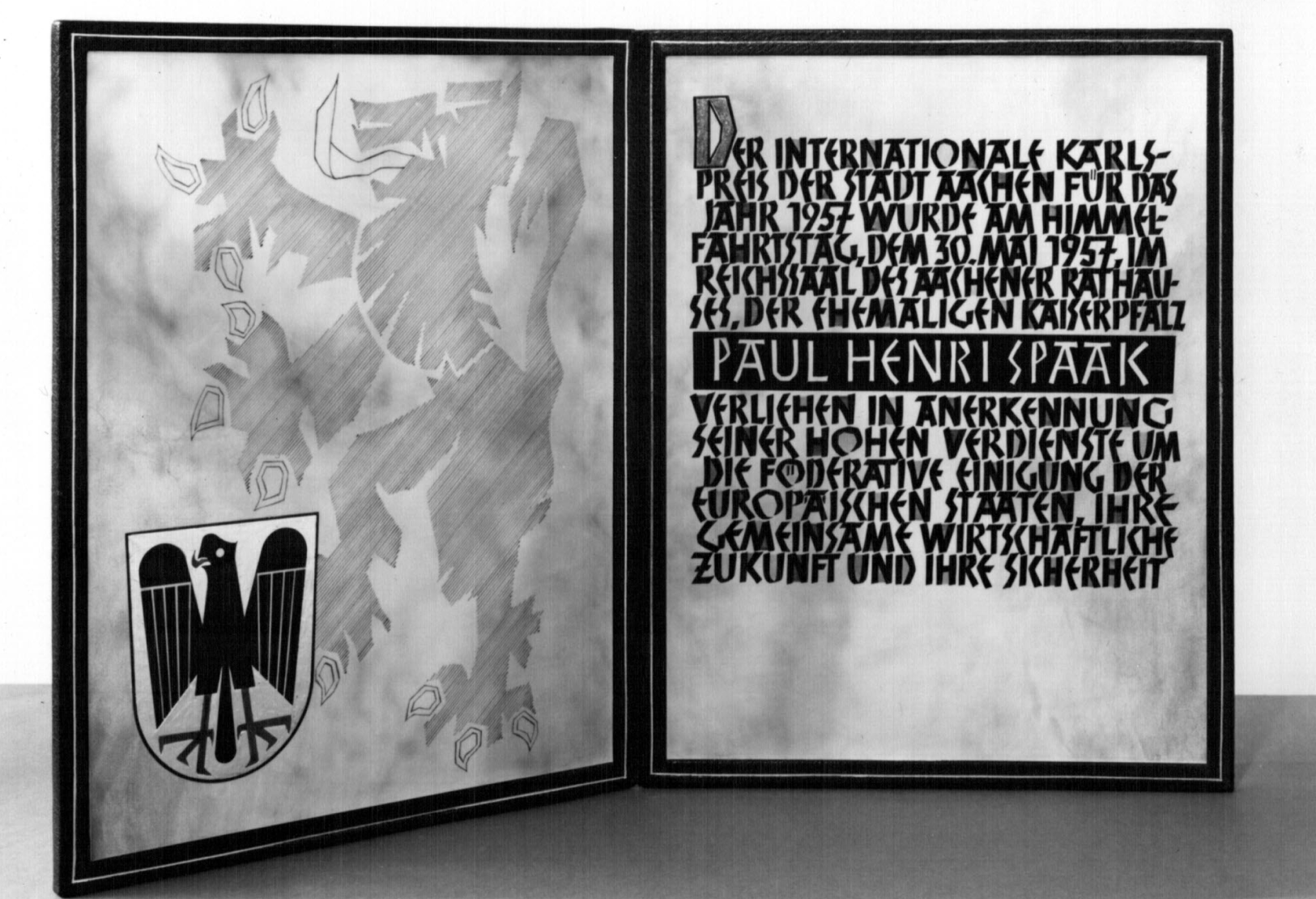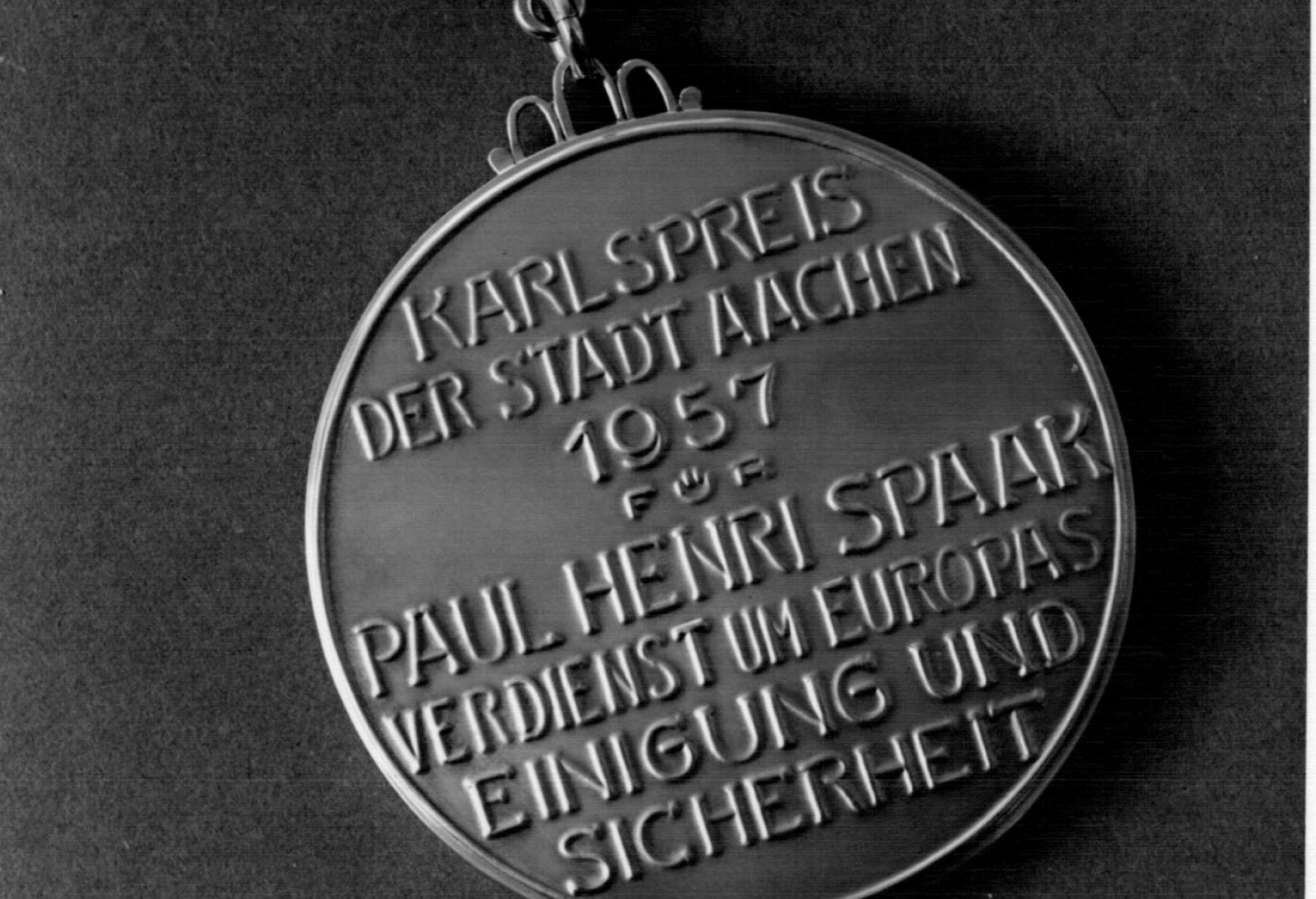 Der Internationale Karlspreis der Stadt Aachen für das Jahr 1957 wurde am Himmelfahrtstag, dem 30. Mai 1957, im Reichssaal des Aachener Rathauses, der ehemaligen Kaiserpfalz, Paul Henri Spaak verliehen in Anerkennung seiner hohen Verdienste um die föderative Einigung der europäischen Staaten, ihre gemeinsame wirtschaftliche Zukunft und ihre Sicherheit.