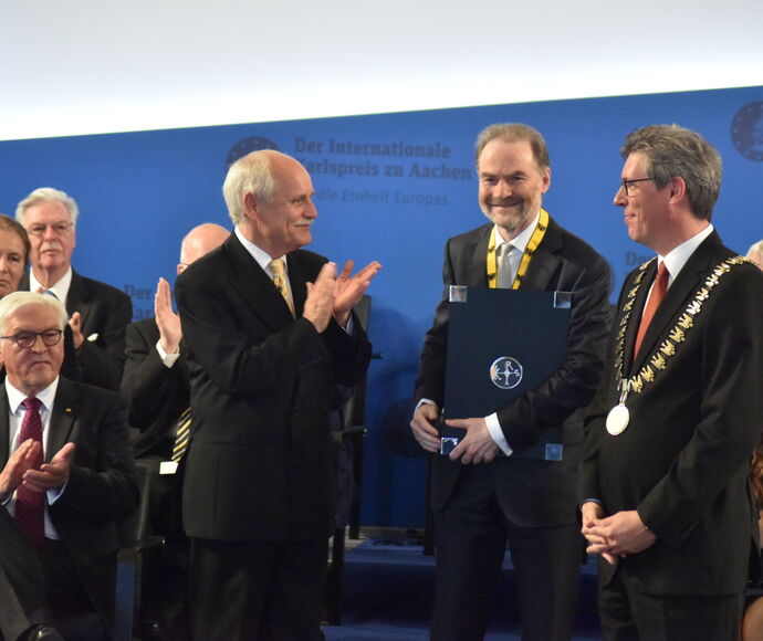 Mit dem Historiker und Publizisten Prof. Timothy Garton Ash ehrt das Direktorium der Gesellschaft für die Verleihung des Internationalen Karlspreises zu Aachen im Jahre 2017 einen herausragenden englischen Wissenschaftler, der mit Leidenschaft und intellektueller Schärfe den Weg der Europäischen Union begleitet und kommentiert und der der Gemeinschaft auch gedankliche Tiefe gibt. Mit seinem wissenschaftlichen und publizistischen Werk gibt Timothy Garton Ash bedeutende Anstöße, den Herausforderungen einer globalen und vernetzten Welt mit Prinzipien zu begegnen, die auf zutiefst europäischen Werten basieren.