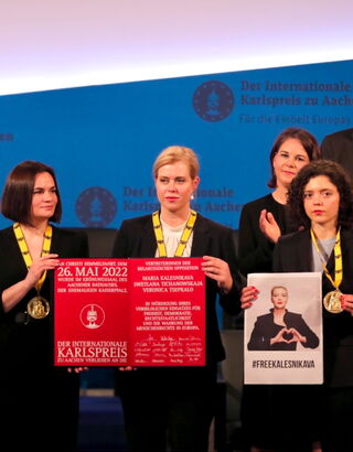 Maria Kalesnikava, Swetlana Tichanowskaja und Veronica Tsepkalo