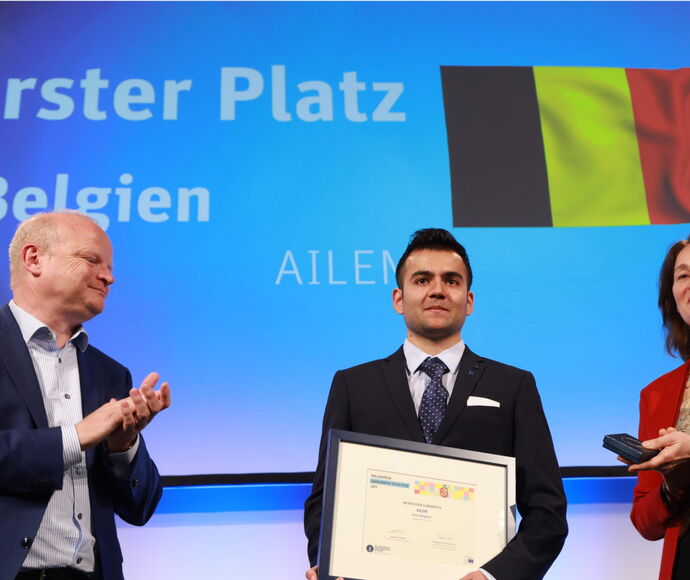 Der erste Preis in Höhe von 7.500 Euro geht an „AILEM“ aus Belgien – eine Sprach-App, die sich an Geflüchtete und Asylbewerber richtet und in Zusammenarbeit mit diesen entwickelt wurde. Mit der App können interkulturelle Missverständnisse und Klüfte zwischen Geflüchteten und ihrem Gastland abgebaut werden. Sie enthält nützliche Redewendungen, Geschichten zum Sprachenlernen und Spiele sowie Möglichkeiten, mit anderen Nutzern in Kontakt zu treten. Mit dem Projekt sollen Menschen mit unterschiedlichen Hintergründen, Erfahrungen und sozialem Status zusammengebracht werden.