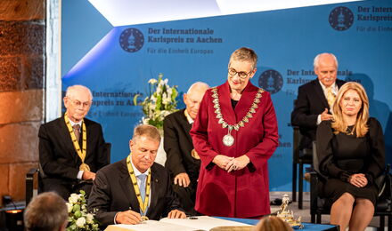 Die Europäische Union ist heute in vielen wesentlichen Fragen zerstritten und gespalten. Angesichts der großen globalen Herausforderungen braucht es aber Einigkeit, gegenseitige Anerkennung und Versöhnung. Den europäischen Wertekanon, die Stärkung der europäischen Rechtsgemeinschaft und die gemeinsame Idee von einer europäischen Zukunft verkörpert im Osten der Karlspreisträger 2020, der Präsident von Rumänien, Klaus Johannis.