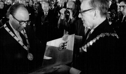 An Christi Himmelfahrt, dem 11. Mai 1972, wurde im Krönungssaal des Rathauses zu Aachen, der ehemaligen Kaiserpfalz, derInternationale Karlspreis der Stadt Aachen an The Rt. Hon. Roy Jenkins P.C.M.P. verliehen in Würdigung seines entschlossenen Eintretens für die Mitgliedschaft des VereinigtenKönigreichs Großbritannien in derEuropäischen Gemeinschaft, im Vertrauen auf die wirtschaftliche Zukunft und die soziale Wohlfahrt seines Landes und aller europäischen Staaten.