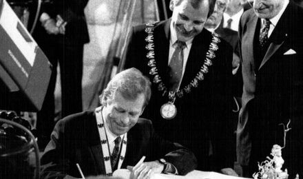 Am Himmelfahrtstag, dem 9. Mai 1991, wurde im Krönungssaal des Rathauses, der ehemaligen Kaiserpfalz, der Internationale Karlspreis zu Aachen an den Präsidenten der Tschechischen und Slowakischen Föderativen Republik Václav Havel verliehen in Würdigung seines Einsatzes für den Geist der Freiheit und die Verwirklichung des Friedens in seinem Land und in ganz Europa.