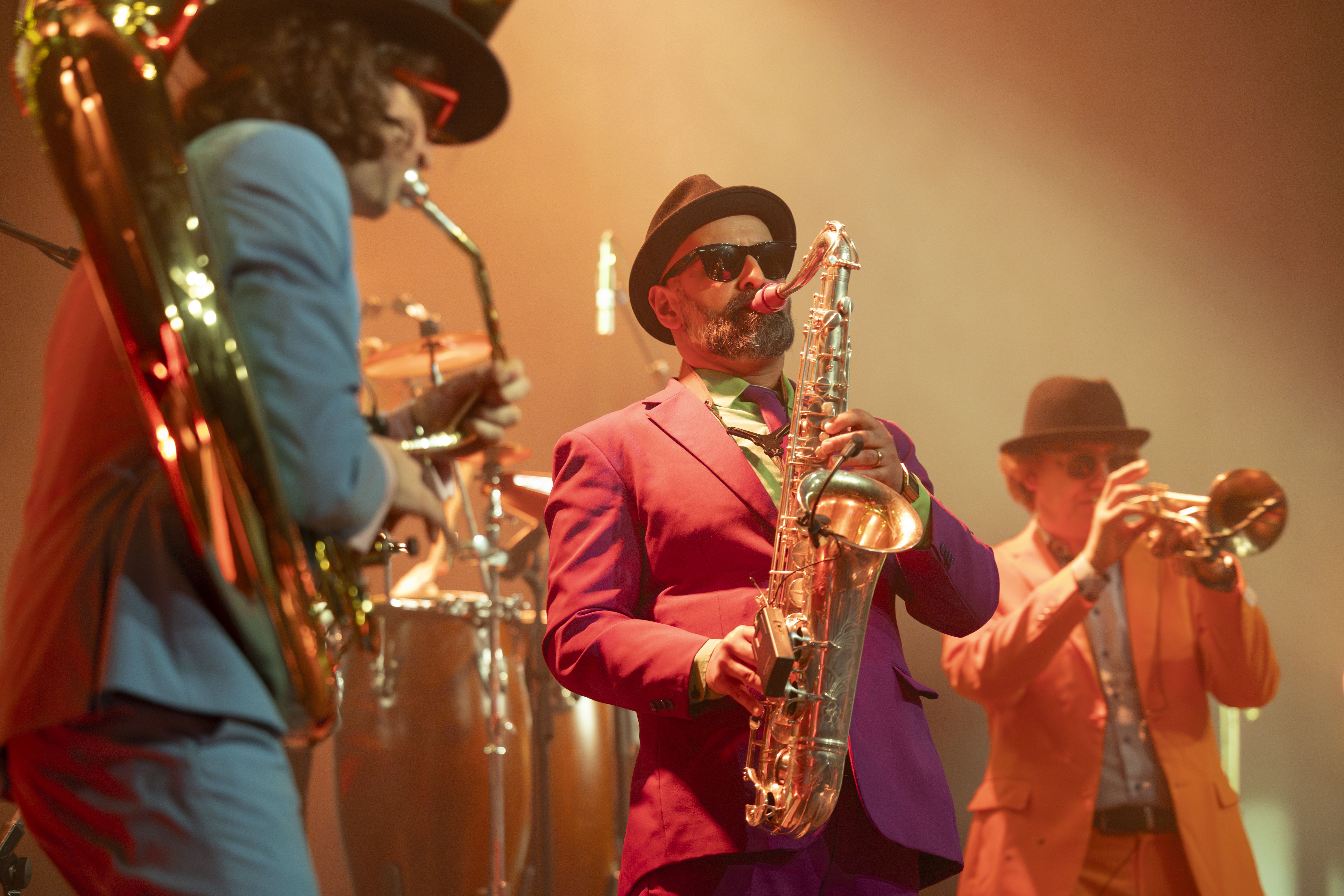 Brazzo Brazzone sind: Trumpet & Vocals: Daniel Zeinoun / Altsax: Laurenzo Cedric / Tenorsax: Coco Guerra / Gitarre: Niklas Turmann / Sousaphon: Raimund Lippock / Drums: Tim Nicklaus