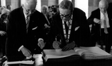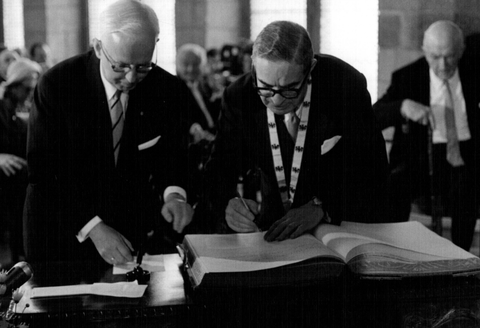 Karlspreis 1969 der Stadt Aachen für die Kommission der Europäischen Gemeinschaften in Anerkennung ihrer hohen Verdienste um die Europäische Einigung