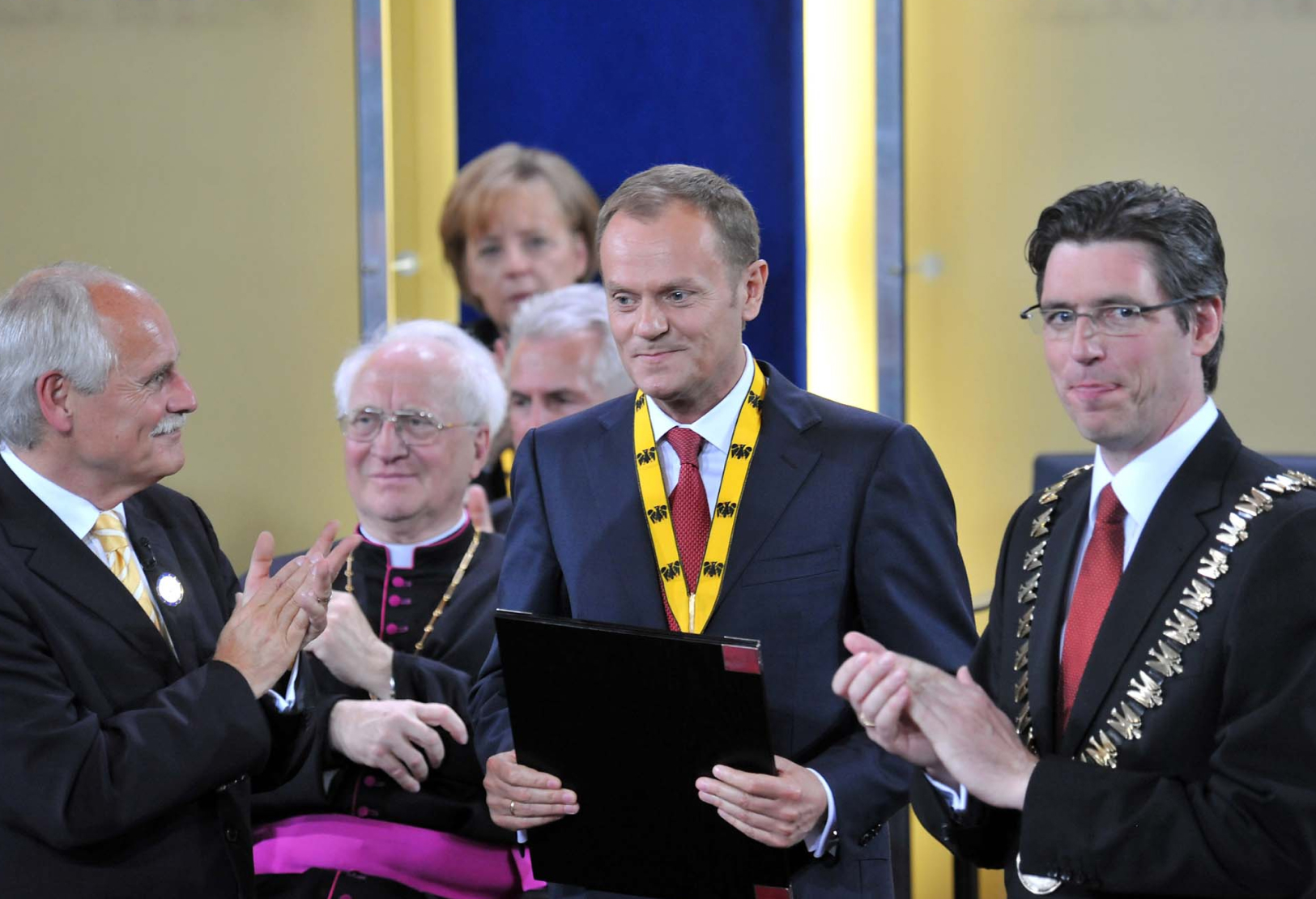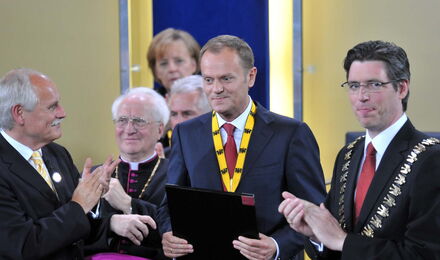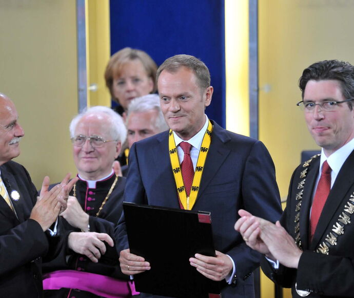 In awarding the 2010 International Charlemagne Prize to the Prime Minister of the Republic of Poland, Donald Tusk, the Board of Directors of the Society for the Conferring of the International Charlemagne Prize in Aachen is honouring an outstanding champion of freedom, democracy and human rights who never bowed to the Communist regime; a convinced and convincing European who is able to inspire enthusiasm for Europe particularly among the young generation, who stands for understanding, cooperation, solidarity and a Poland open to the world, firmly anchored in the European family of nations and returned to the heart of Europe.