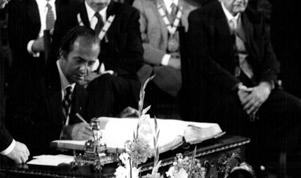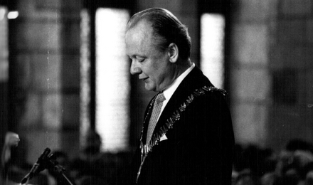 On Ascension Day, 31 May 1984, in the Coronation Hall of the City Hall, the former imperial palace, the International Charlemagne Prize of the City of Aachen was awarded to the President of the Federal Republic of Germany, Karl Carstens, in recognition of his tireless efforts to promote the political, economic and cultural unification of the European Community.