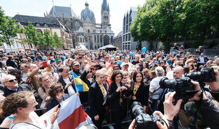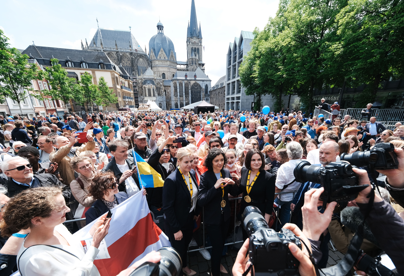 With Maria Kalesnikava, Svetlana Tikhanovskaya and Veronica Tsepkalo, the Board of Directors of the Society for the Conferring of the International Charlemagne Prize of Aachen in 2022 honours three courageous women who stood up to the dictator of Belarus under the most difficult political conditions, at the risk of their personal freedom and integrity; three outstanding personalities who stand up for what is at the heart of the European project: human rights, peace and freedom, the rule of law, democracy and solidarity. With their resolute and fearless commitment, the three Belarusian leading figures have become an important role model for the democratic struggle for freedom not only for hundreds of thousands of compatriots, but also far beyond the Belarusian border.