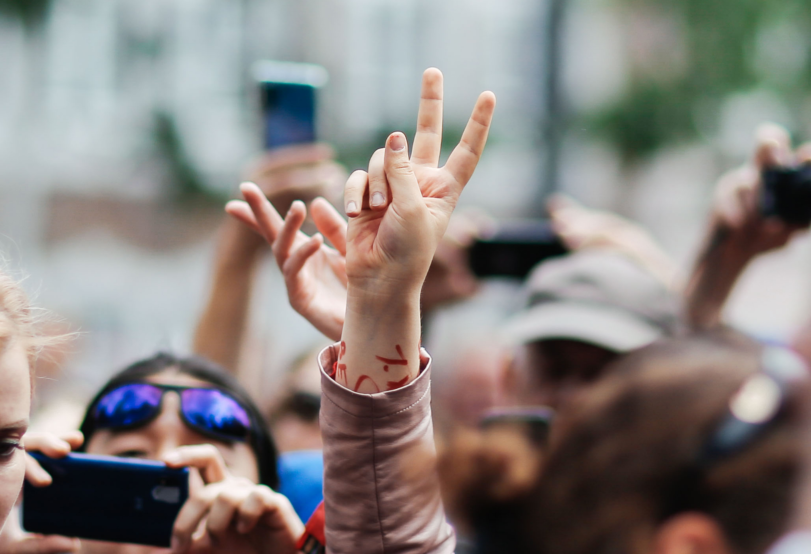 Maria Kalesnikava, who refuses to leave the country, is imprisoned in September 2020 and sentenced to eleven years in prison in September 2021 for allegedly preparing a plot to seize power illegally and jeopardising national security. And when she smiles in the courtroom on the day of the verdict - standing in a kind of cage - and once again forms her shackled hands into a heart, the symbol of love, it is a message that touches and encourages people in Belarus and far beyond.