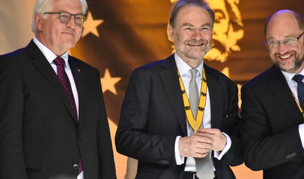 However, Garton Ash would not be the outstanding crosser of borders between historical science, journalism and precise political analysis if he were to remain in history alone. Rather, he added his suggestion at that time as to how Europe's new history could be told: an honest and self-critical account of the progress that leads us from our respective pasts to the common goals of a shared future: our heritage of European values. Because one thing is clear: ‘we cannot simply stand still. If we do not go forward, we go backward. Not forward, I emphasise, to some idealised United States of Europe, but to a practical construction strong enough to weather the storm’.