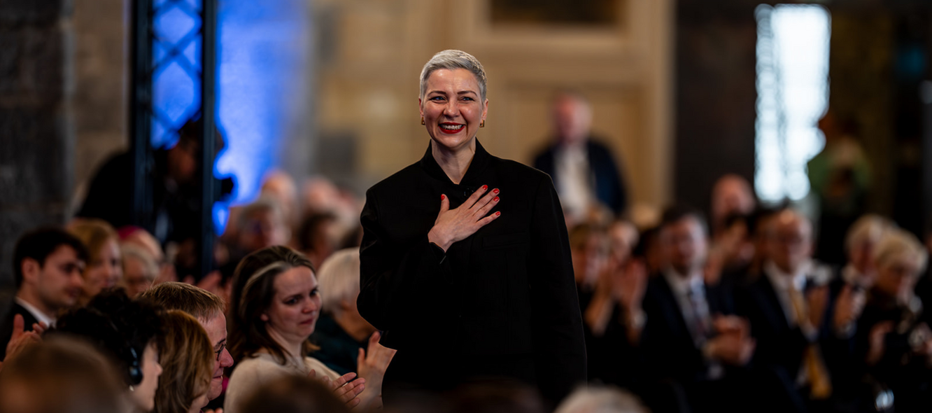 In a special ceremonial act, the Belarusian civil rights activist Maria Kalesnikava will now personally receive the Charlemagne Prize, which was awarded to her in absentia in 2022. The International Charlemagne Prize of Aachen and the City of Aachen therefore invite guests to a ceremony held in her honour on 14 March 2026 at 11.00 a.m. in the Coronation Hall of Aachen Town Hall. The Belarusian opposition figure was released from political imprisonment in Belarus in December 2025.