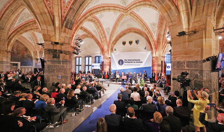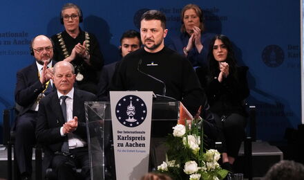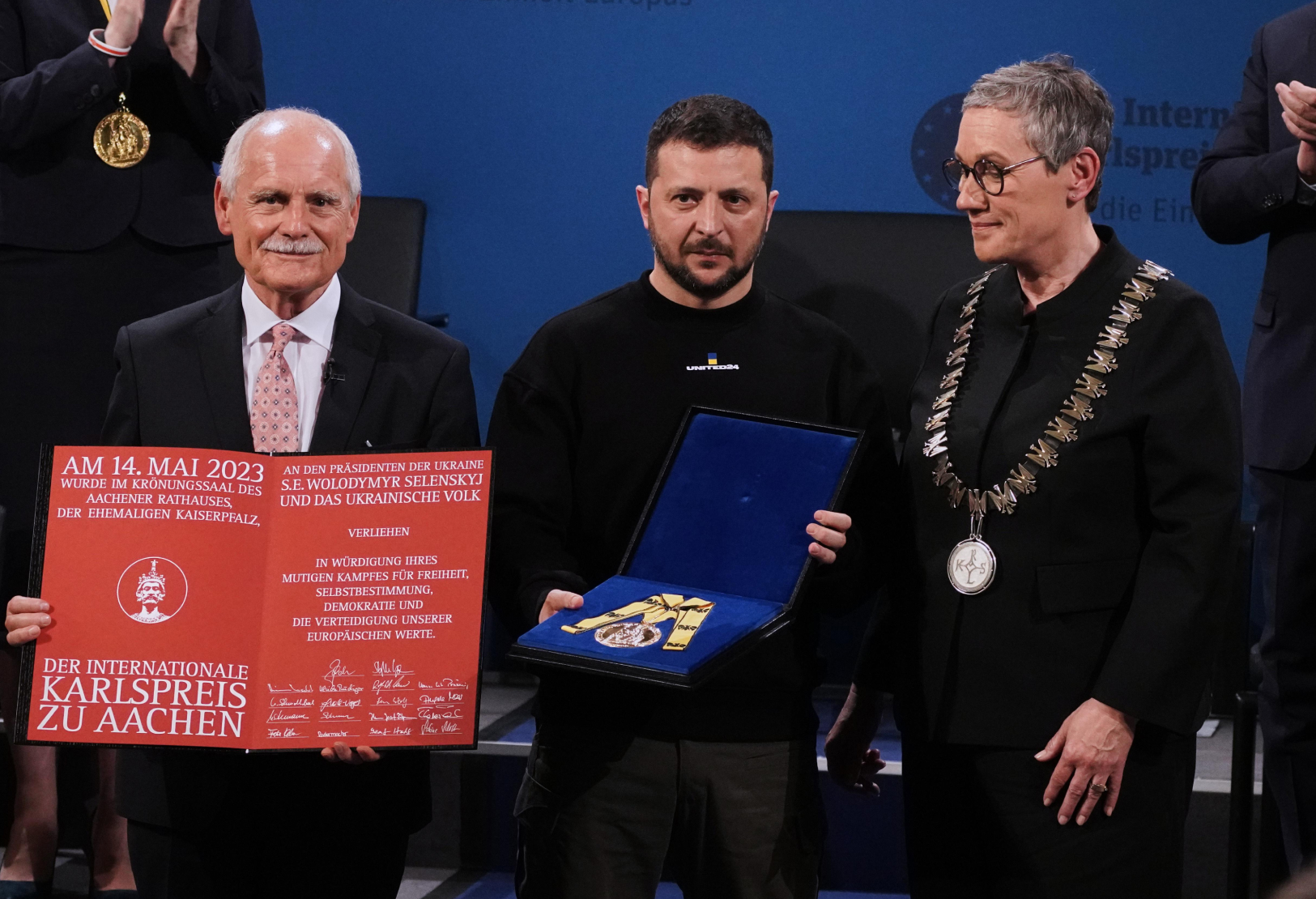La Société du Prix Charlemagne est honorée que le président Zelensky, en personne et au nom de son peuple, accepte cette distinction pour l'année 2023.